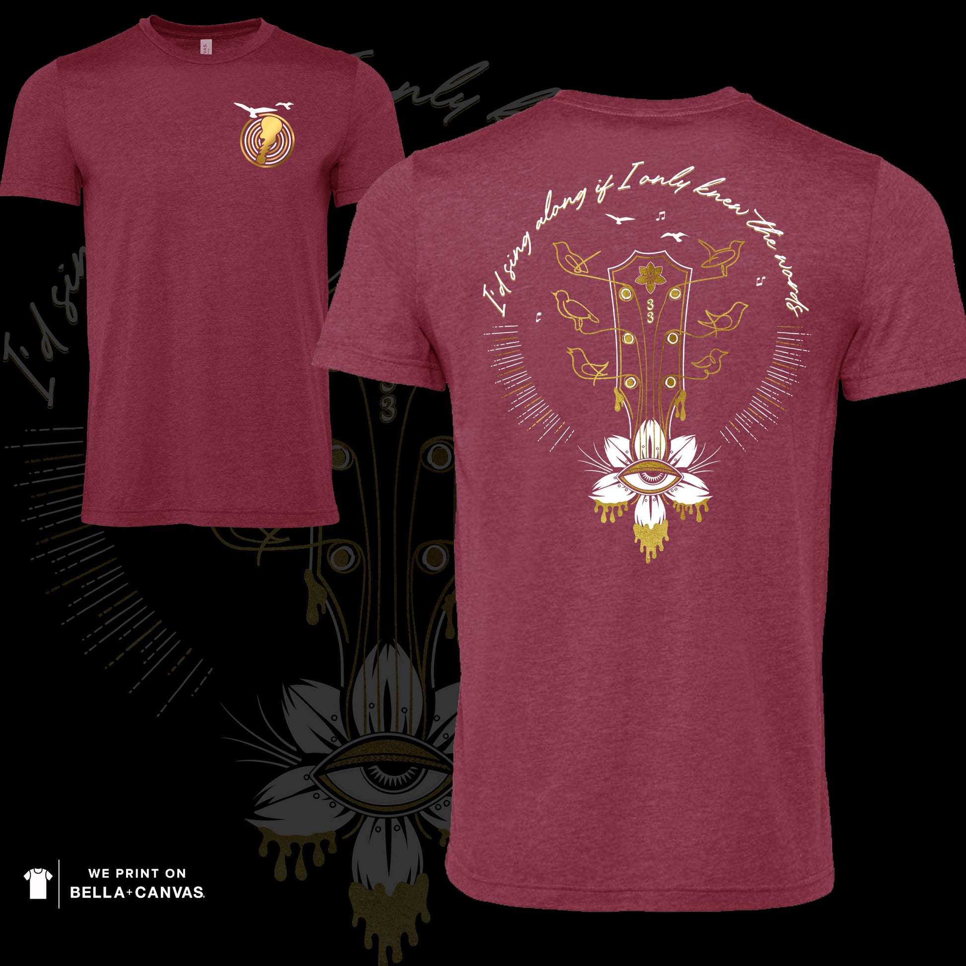 The strings become birds and try to take flight from the headstock! Featuring metallic gold ink on the reverse. Super excited to bring this design to life, hope you like! :)